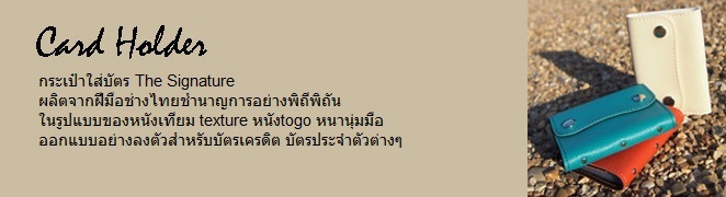 จำหน่ายสินค้าหนัง PU คุณภาพสูงแบรนด์ The Signature พร้อมบริการประทับโลโก้ เพื่อให้เป็นของแจกลูกค้า ของขวัญแจกลูกค้า ของพรีเมี่ยม ของที่ระลึกในโอกาสต่างๆ เช่น ปกพาสปอร์ตปั้มโลโก้บริษัททัวร์แจกลูกทัวร์เพื่อระลึก ,กระเป๋าใส่สมุดบัญชีธนาคารปั้มโลโก้ธนาคารนั้นเพื่อแจกเนื่องในวาระต่างๆ ,กระเป๋าใส่บัตรปั้มโลโก้เพื่อให้เป็นของขวัญปีใหม่ ,สมุดแพลนเนอร์ปั้มโลโก้ให้เป็นของที่ระลึกในงานเกษียณอายุ และให้พวงกุญแจปั้มโลโก้เป็นของชำร่วยงานแต่งงาน เป็นต้น